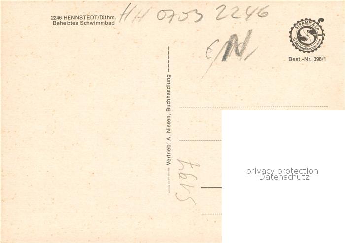 73673980 Hennstedt Dithmarschen Schwimmbad postalisch nicht gelaufen Erhaltung siehe scans [WerneD78] KatCode: 11110001051049