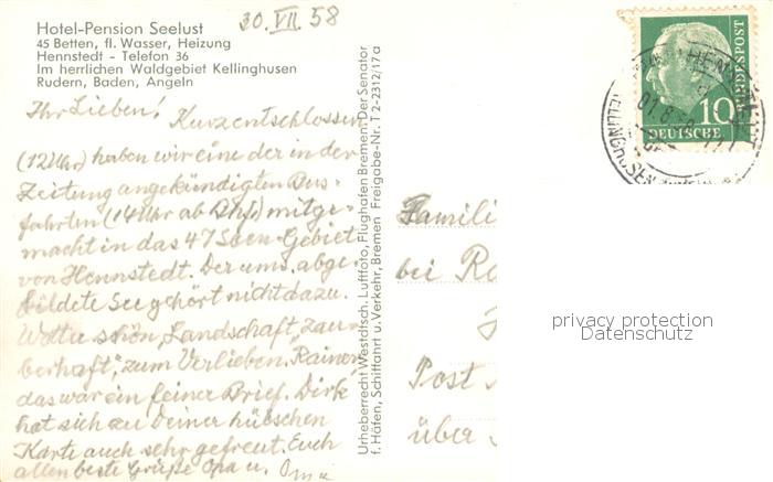 73770339 alte Postkarte Hennstedt Itzehoe Hotel Pension Seelust postalisch gelaufen Fliegeraufnahme Erhaltung siehe scans [FriedD77] KatCode: 11110001061036