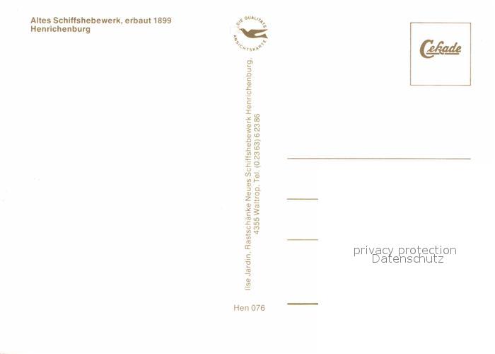 72764110 Henrichenburg Altes Schiffshebewerk erbaut 1899 postalisch nicht gelaufen Erhaltung siehe scans [FriedD77] KatCode: 11110005562004
