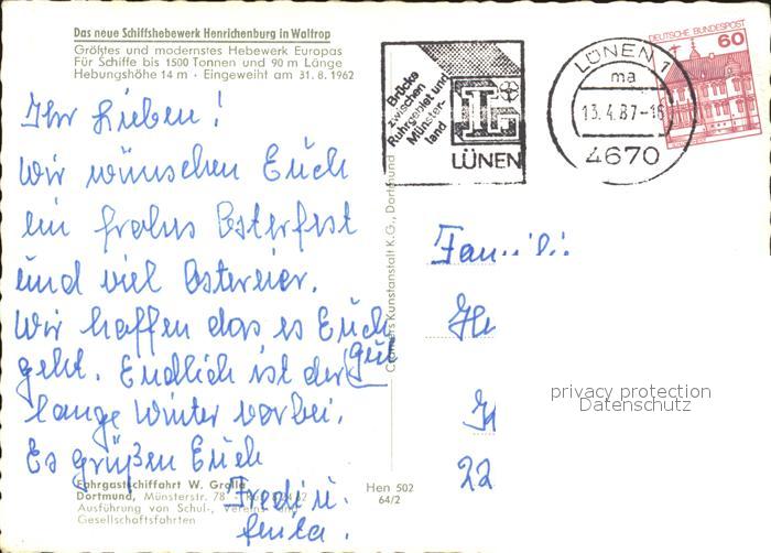 72186575 alte Postkarte Henrichenburg Schiffshebewerk postalisch gelaufen Erhaltung siehe scans KatCode: 11110005562036