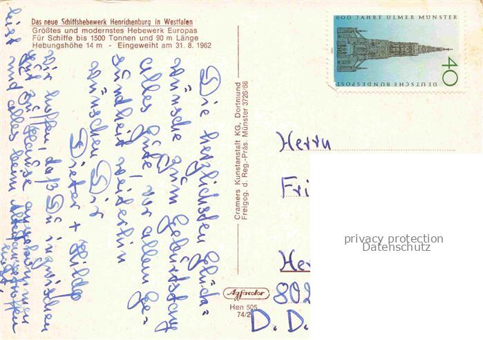 74044133 alte Postkarte Henrichenburg Schiffshebewerk Waltrop NRW Fliegeraufnahme postalisch gelaufen Erhaltung siehe scans [WerneD78] KatCode: 11110005562036