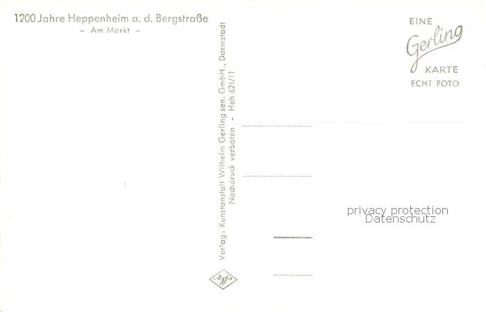 73762692 Heppenheim Bergstrasse Am Markt Brunnen postalisch nicht gelaufen Erhaltung siehe scans [FriedD77] KatCode: 11110006431011