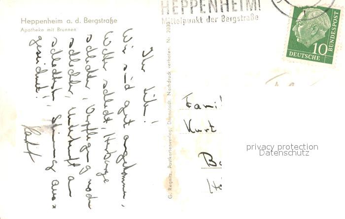 73318072 alte Postkarte Heppenheim Bergstrasse Apotheke Brunnen postalisch gelaufen Erhaltung siehe scans [KathaD81] KatCode: 11110006431011