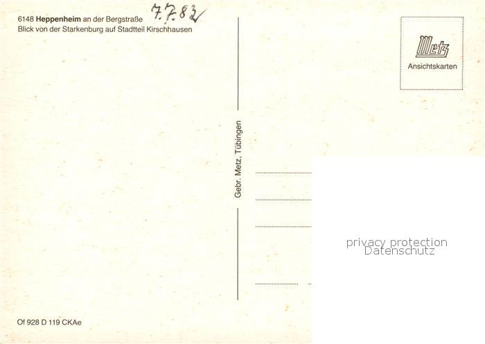 73228274 Heppenheim Bergstrasse Blick von der Starkenburg auf Stadtteil Kirschhausen postalisch nicht gelaufen Erhaltung siehe scans [FriedD77] KatCode: 11110006431011