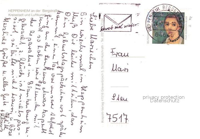 73228283 alte Postkarte Heppenheim Bergstrasse Brunnen Marktplatz Rathaus Altstadt Fachwerkhaeuser postalisch gelaufen Erhaltung siehe scans [FriedD77] KatCode: 11110006431011