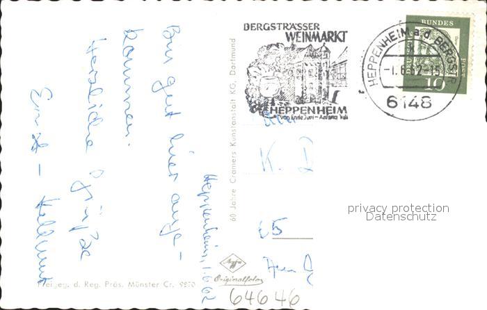 31705974 alte Postkarte Heppenheim Bergstrasse Fliegeraufnahme postalisch gelaufen Erhaltung siehe scans KatCode: 11110006431011