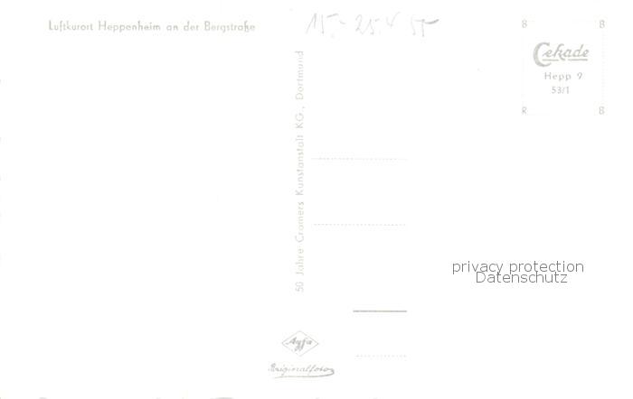 73820893 alte Postkarte Heppenheim Bergstrasse Fliegeraufnahme postalisch gelaufen Erhaltung siehe scans [WerneD78] KatCode: 11110006431011