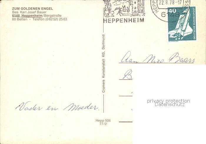 72417236 alte Postkarte Heppenheim Bergstrasse Gasthaus Zum Goldenen Engel Fachwerkhaeuser Brunnen postalisch gelaufen Erhaltung siehe scans KatCode: 11110006431011