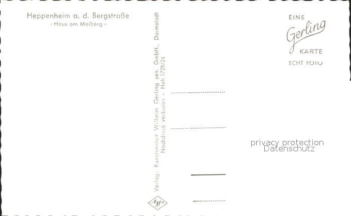 72096929 Heppenheim Bergstrasse Haus am Maiberg postalisch nicht gelaufen Erhaltung siehe scans KatCode: 11110006431011