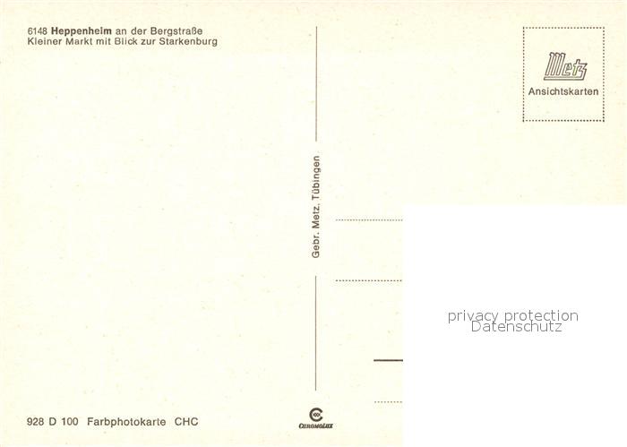 73029071 Heppenheim Bergstrasse Kleiner Markt mit Starkenburg postalisch nicht gelaufen Erhaltung siehe scans [WerneD78] KatCode: 11110006431011