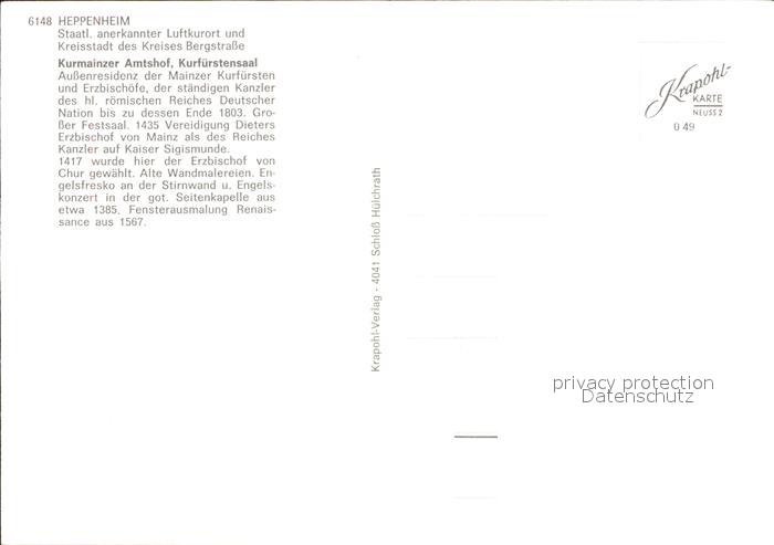 71991755 Heppenheim Bergstrasse Kurmainzer Amtshof Kurfuerstensaal postalisch nicht gelaufen Erhaltung siehe scans KatCode: 11110006431011