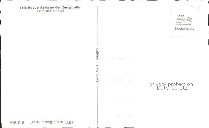 32212556 Heppenheim Bergstrasse Lorscher- Strasse postalisch nicht gelaufen Erhaltung siehe scans KatCode: 11110006431011