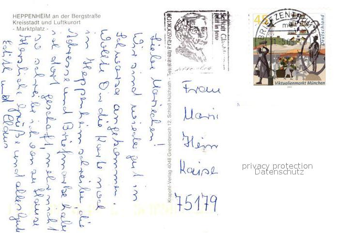 73228293 alte Postkarte Heppenheim Bergstrasse Marktplatz Brunnen Fachwerkhaeuser Altstadt postalisch gelaufen Erhaltung siehe scans [FriedD77] KatCode: 11110006431011