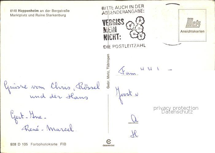72453493 alte Postkarte Heppenheim Bergstrasse Marktplatz Ruine Starkenburg postalisch gelaufen Erhaltung siehe scans KatCode: 11110006431011