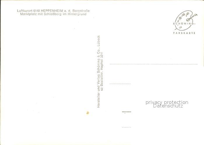 72050799 Heppenheim Bergstrasse Marktplatz Schlossberg postalisch nicht gelaufen Erhaltung siehe scans KatCode: 11110006431011