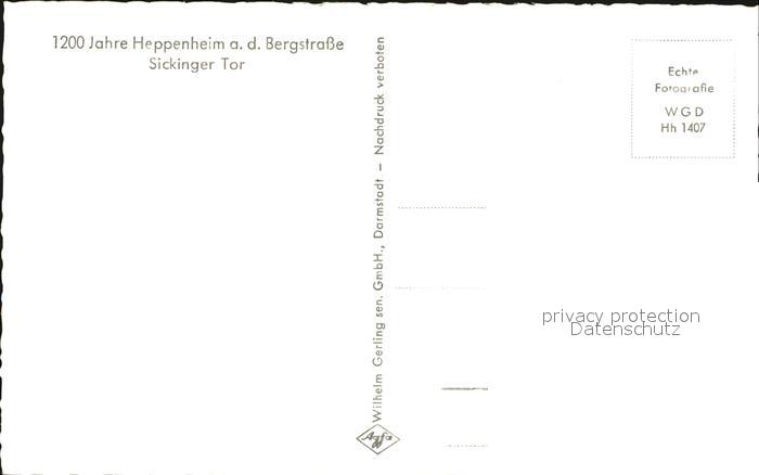 72573072 Heppenheim Bergstrasse Sickinger Tor postalisch nicht gelaufen Erhaltung siehe scans [AndreD76] KatCode: 11110006431011