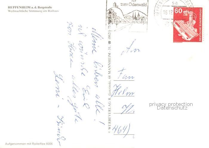 73813517 alte Postkarte Heppenheim Bergstrasse Weihnachtliche Stimmung am Rathaus postalisch gelaufen Erhaltung siehe scans [WerneD78] KatCode: 11110006431011
