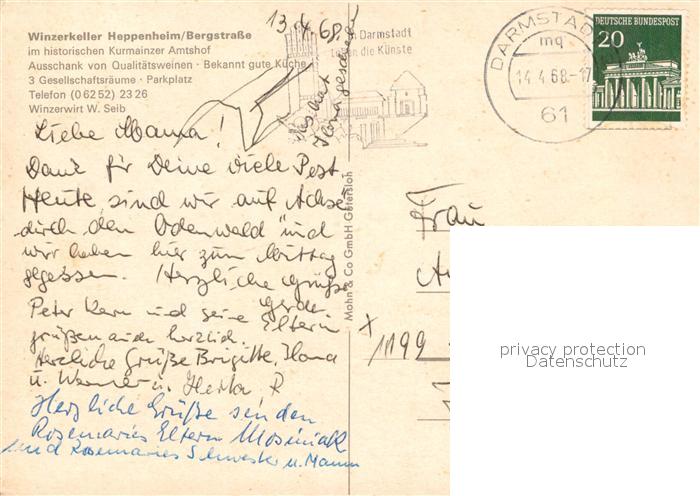 73046065 alte Postkarte Heppenheim Bergstrasse Winzerkeller Heppenheim postalisch gelaufen Erhaltung siehe scans [WerneD78] KatCode: 11110006431011