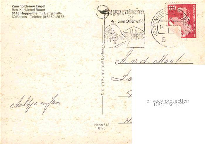 72822168 alte Postkarte Heppenheim Bergstrasse Zum goldenen Engel Fachwerk postalisch gelaufen Erhaltung siehe scans [LiesaD40] KatCode: 11110006431011