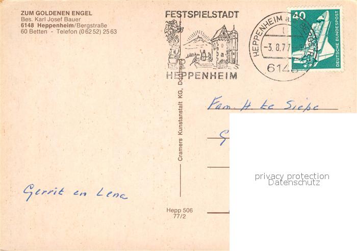 72932384 alte Postkarte Heppenheim Bergstrasse Zum Goldenen Engel Fachwerkhaeuser postalisch gelaufen Erhaltung siehe scans [WerneD78] KatCode: 11110006431011