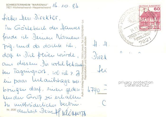 73090416 alte Postkarte Heppenschwand Schwesternheim Marienau postalisch gelaufen Erhaltung siehe scans [NatalD47] KatCode: 11110008337051