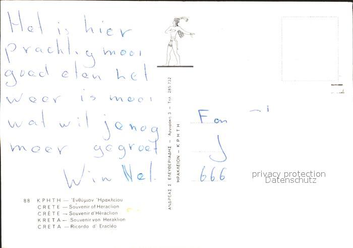 old postcard Heraclion Iraklio Denkmal Strassenansicht postalisch gelaufen Erhaltung siehe scans