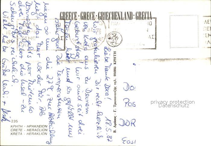 old postcard Heraclion Iraklio Hafen Brunnen Fischerboot Markt postalisch gelaufen Erhaltung siehe scans