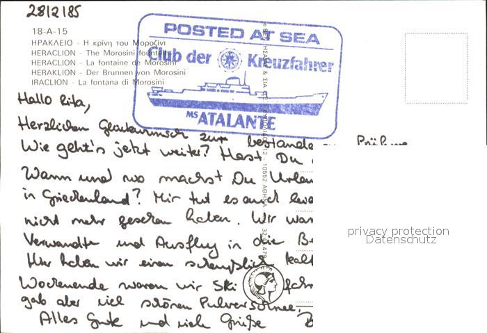 old postcard Heraklion Iraklio Brunnen von Morosini postalisch gelaufen Erhaltung siehe scans [FriedD77]