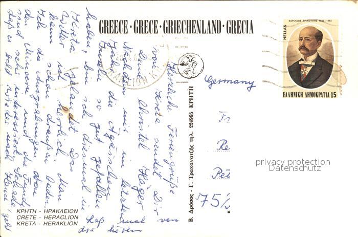 old postcard Heraklion Iraklio Hafen Brunnen Markt postalisch gelaufen Erhaltung siehe scans