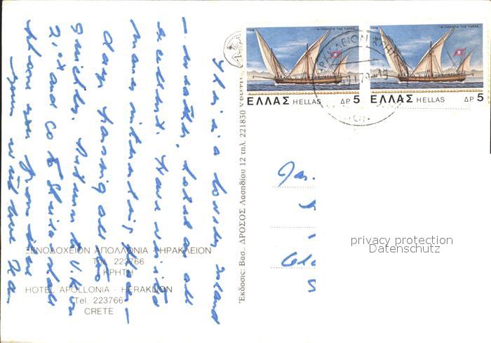old postcard Heraklion Iraklio Hotel Apollonia postalisch gelaufen Erhaltung siehe scans