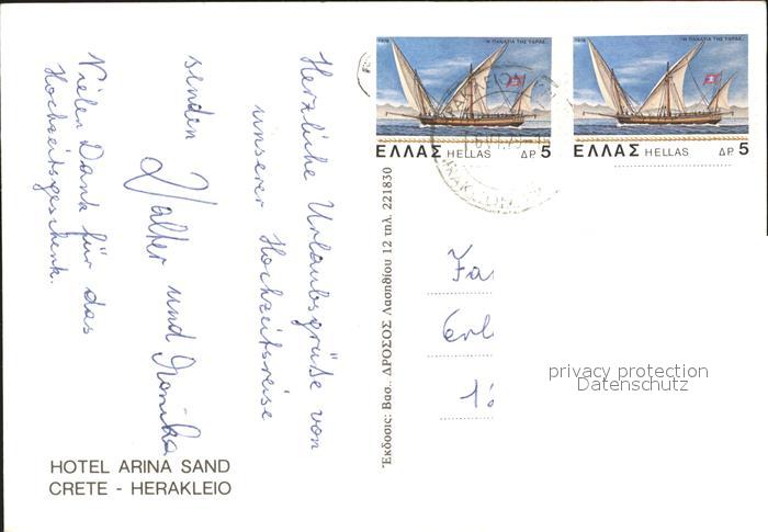 old postcard Heraklion Iraklio Hotel Arina Sand Swimming Pool postalisch gelaufen Erhaltung siehe scans