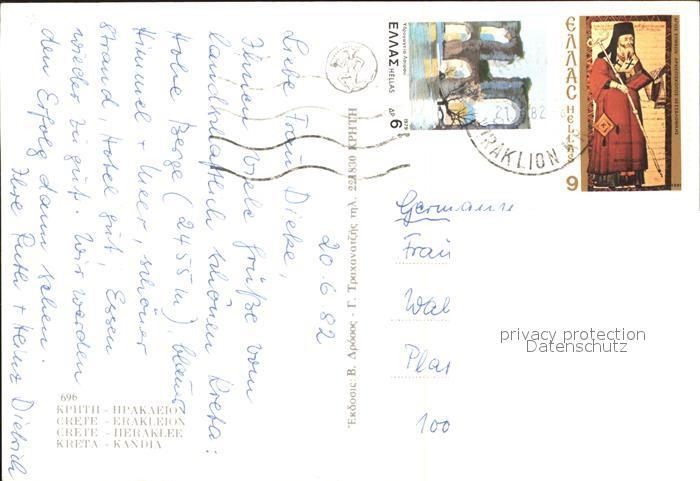 old postcard Heraklion Iraklio Kandia Brunnen Hafen Ruine postalisch gelaufen Erhaltung siehe scans