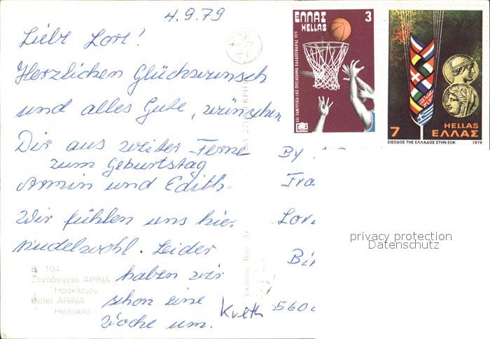 old postcard Heraklion Iraklio Strand Hotel Arina postalisch gelaufen Erhaltung siehe scans