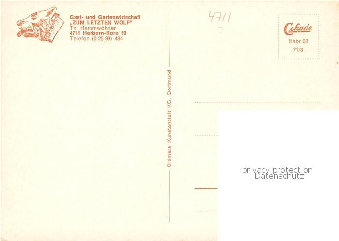 73871108 Herbern Gast und Gartenwirtschaft Zum letzten Wolf postalisch nicht gelaufen Erhaltung siehe scans [WerneD78] KatCode: 11110005558004