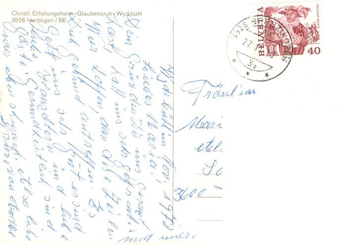 13887169 alte Postkarte Herbligen Christl Erholungsheim Glaubensruh Wydibuehl Details postalisch gelaufen Erhaltung siehe scans [WerneD78] KatCode: 11470060180326