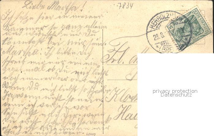 32205903 alte Postkarte Herbolzheim Breisgau Katholische Kirche Rathaus postalisch gelaufen Erhaltung siehe scans KatCode: 11110008316017