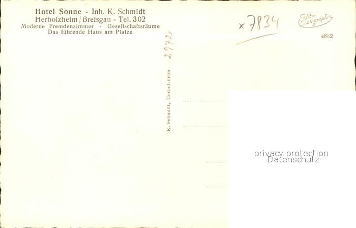 41811612 Herbolzheim Breisgau Rathaus Hotel Sonne postalisch nicht gelaufen Erhaltung siehe scans KatCode: 11110008316017