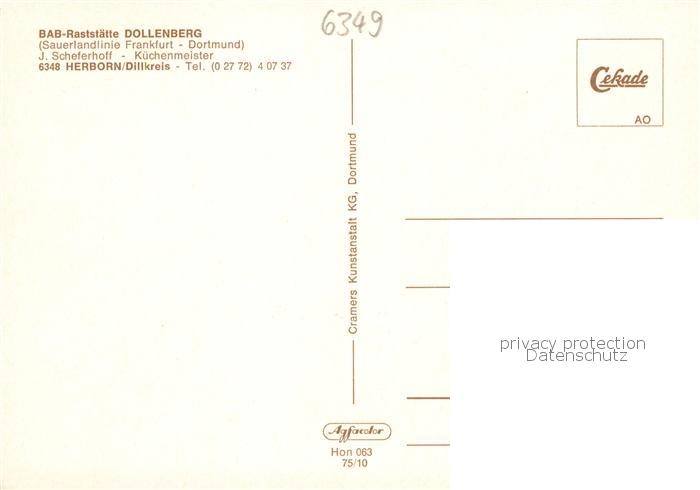 73871514 Herborn Hessen BAB Raststaette Dollenberg postalisch nicht gelaufen Erhaltung siehe scans [WerneD78] KatCode: 11110006532012