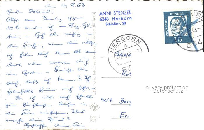 72435657 alte Postkarte Herborn Hessen Hohe Schule postalisch gelaufen Erhaltung siehe scans KatCode: 11110006532012