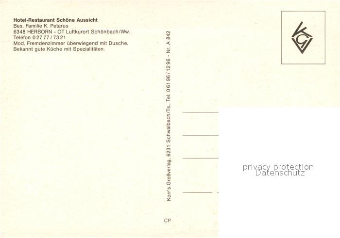 73247053 Herborn Hessen Hotel Restaurant Schoene Aussicht postalisch nicht gelaufen Erhaltung siehe scans [KathaD81] KatCode: 11110006532012