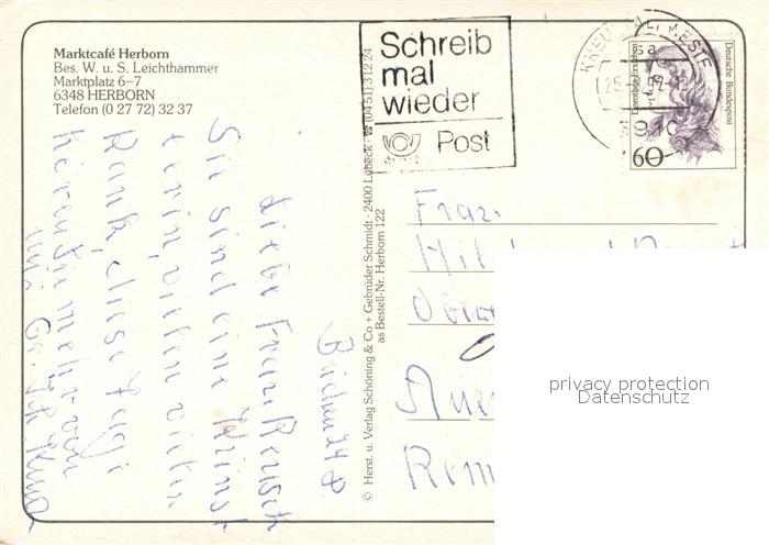 73723202 alte Postkarte Herborn Hessen Marktcafe Gastraeume postalisch gelaufen Erhaltung siehe scans [WerneD78] KatCode: 11110006532012