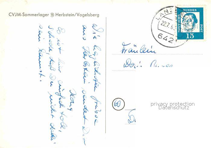 72770064 alte Postkarte Herbstein CVJM Sommerlager postalisch gelaufen Erhaltung siehe scans [AndreD76] KatCode: 11110006535008