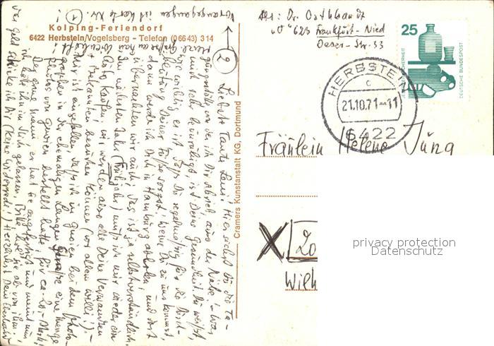 72449120 alte Postkarte Herbstein Fliegeraufnahme Kolping Feriendorf postalisch gelaufen Erhaltung siehe scans KatCode: 11110006535008