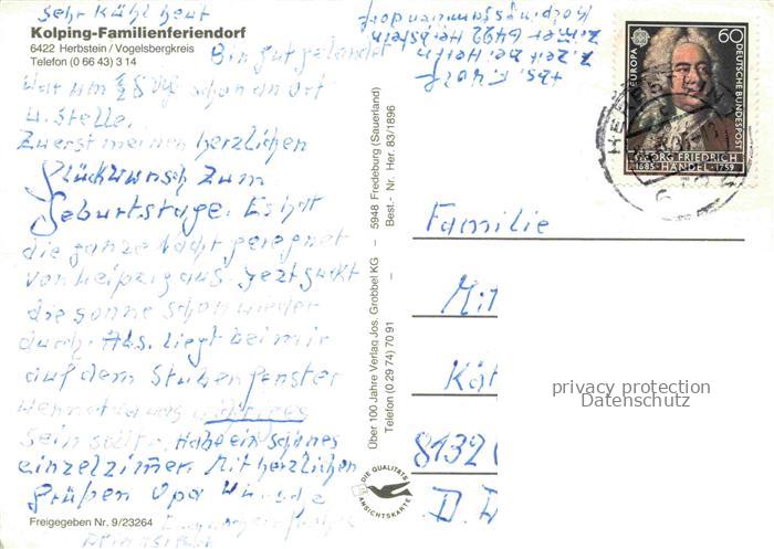 74043722 alte Postkarte Herbstein Kolping-Familienferiendorf postalisch gelaufen Fliegeraufnahme Erhaltung siehe scans [FriedD77] KatCode: 11110006535008