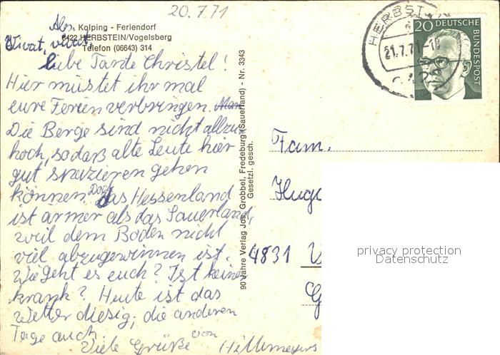 72580583 alte Postkarte Herbstein Kolping Feriendorf postalisch gelaufen Erhaltung siehe scans [KathaD79] KatCode: 11110006535008