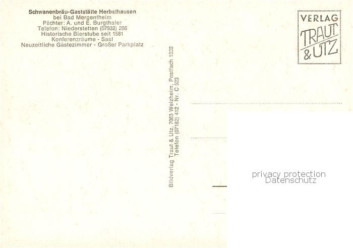 73804392 Herbsthausen Tauber Schwanenbraeu Gaststaette Gastraeume Zimmer postalisch nicht gelaufen Erhaltung siehe scans [WerneD78] KatCode: 11110008128007