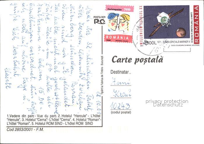 old postcard Herculane Hotels Hercule Cerna Roman Rom Sind postalisch gelaufen Erhaltung siehe scans