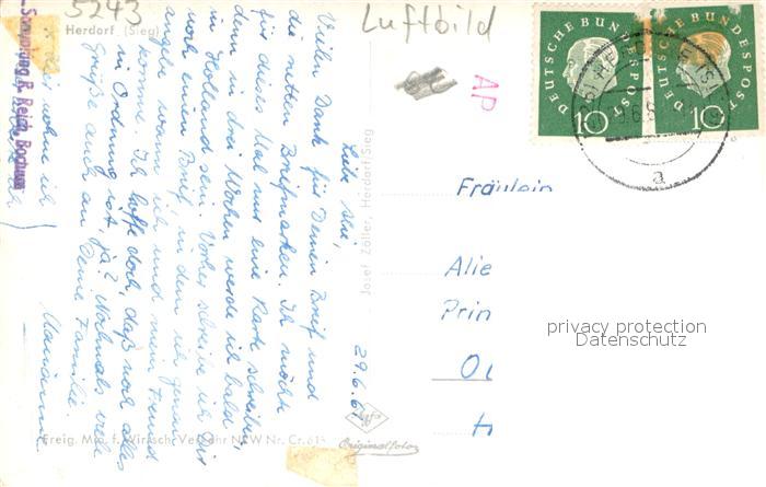 73706226 alte Postkarte Herdorf Sieg Fliegeraufnahme postalisch gelaufen Erhaltung siehe scans [LiesaD40] KatCode: 11110007132050