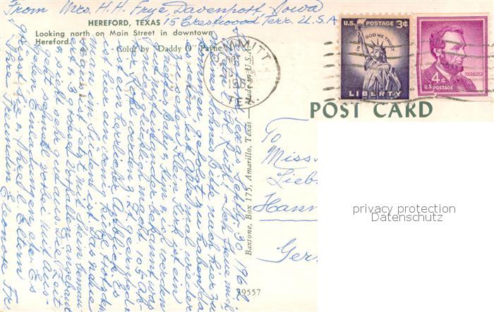 73764079 old postcard Hereford Texas Looking nort on Main Street postalisch gelaufen Erhaltung siehe scans [WerneD78] KatCode: 14140460000000