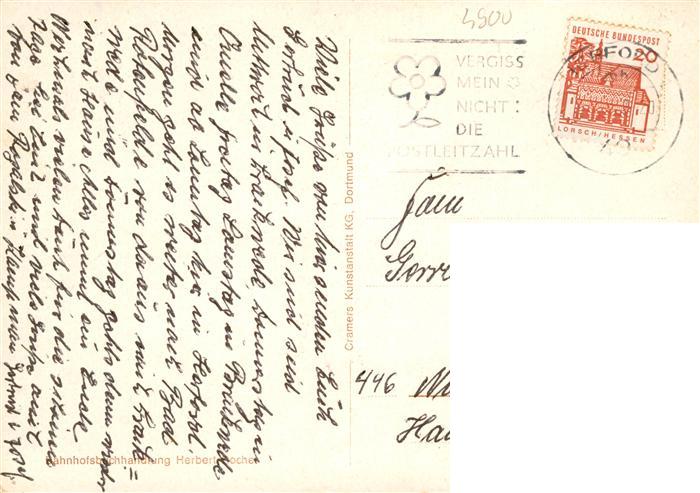 73934307 alte Postkarte Herford Alter Markt Johannis Kirche Partie an der Aa Bahnhof postalisch gelaufen Erhaltung siehe scans [WerneD78] KatCode: 11110005758012